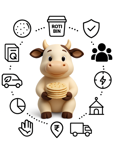 Collect simple leftover food (mainly rotis) and deliver it daily to nearby gaushalas—hygienic, transparent, community-run.